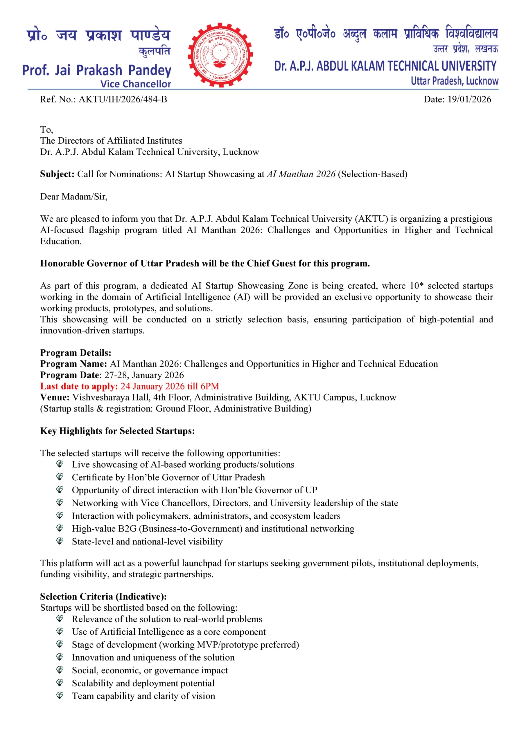 Tags: AKTU AI Manthan 2026, AKTU, AI startup India, AI innovation event, government AI program, DPIIT startup