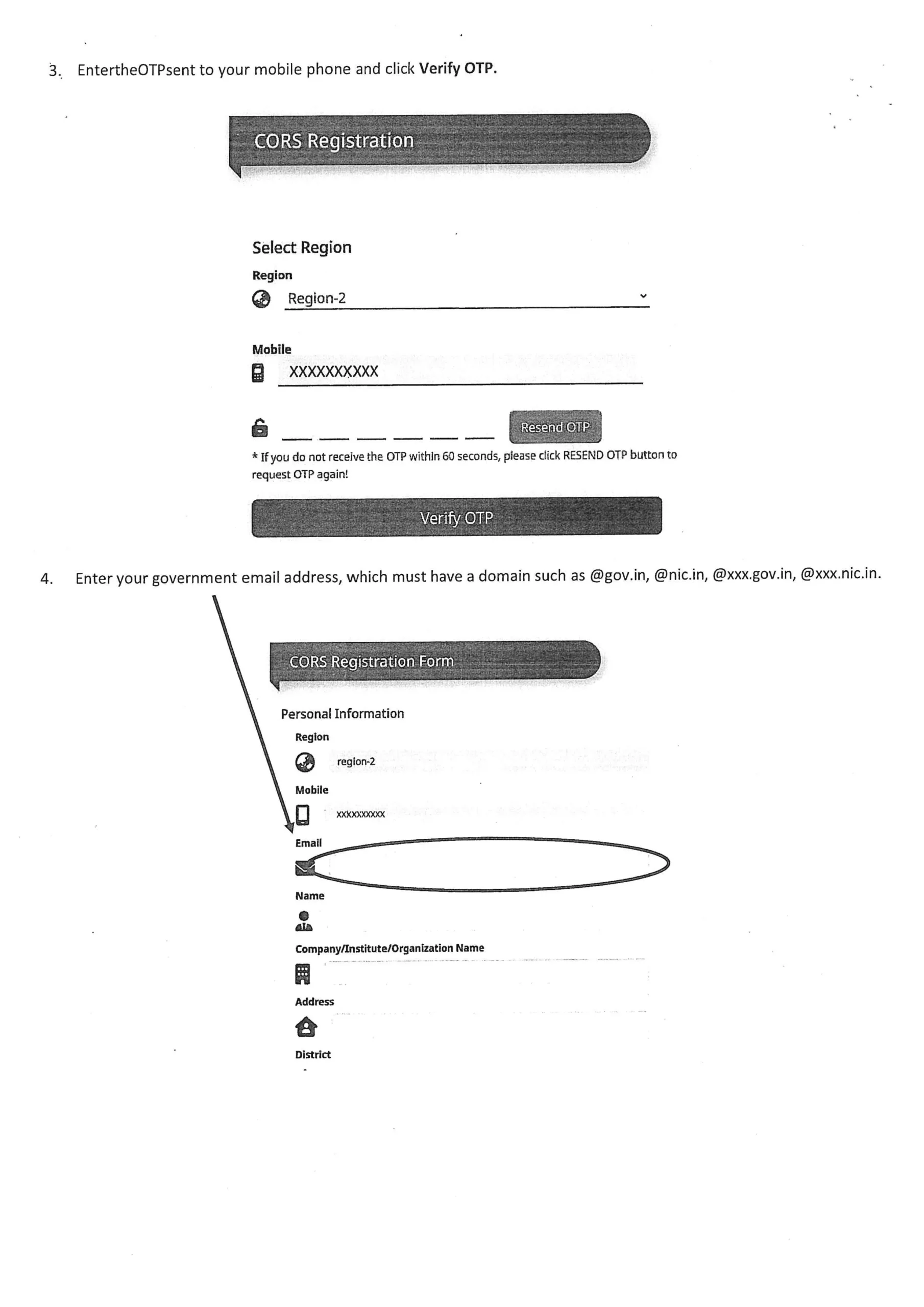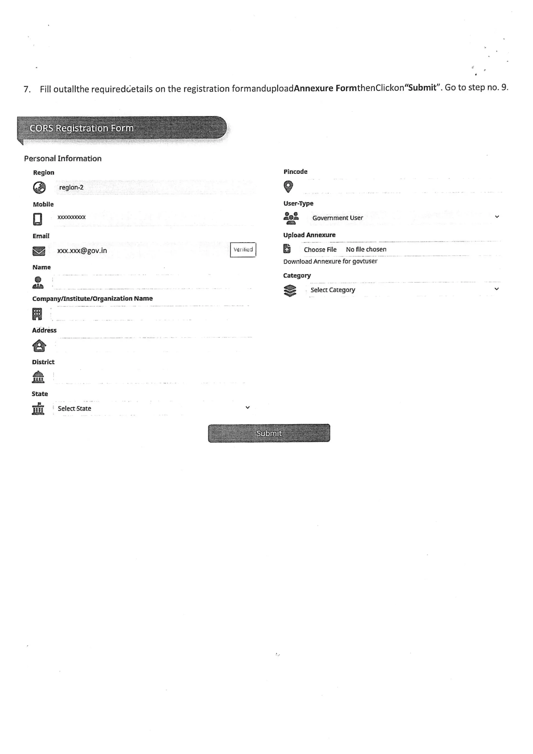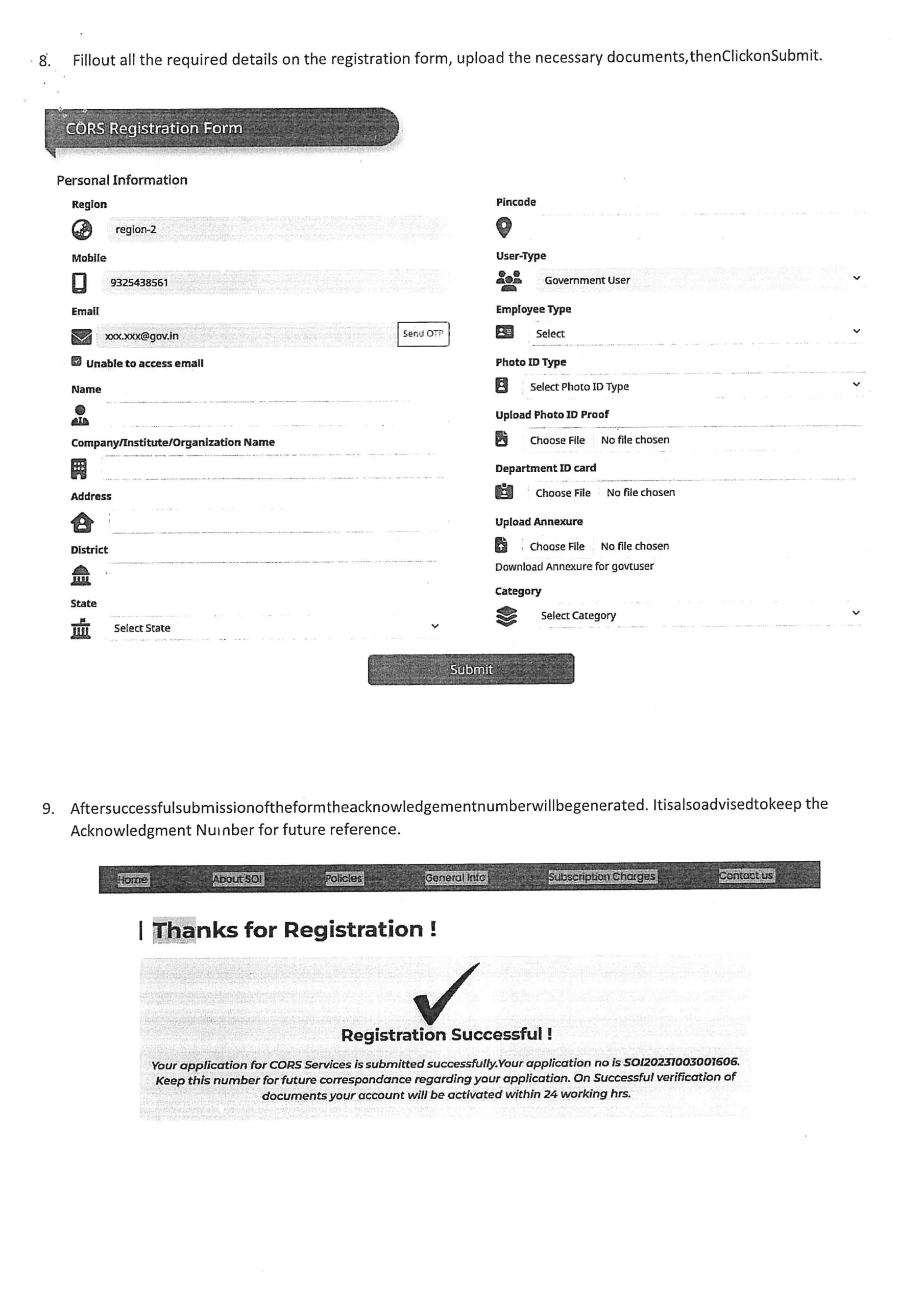 - Provide Required Information – Enter details like institute name, address, department, and the purpose of CORS usage.
