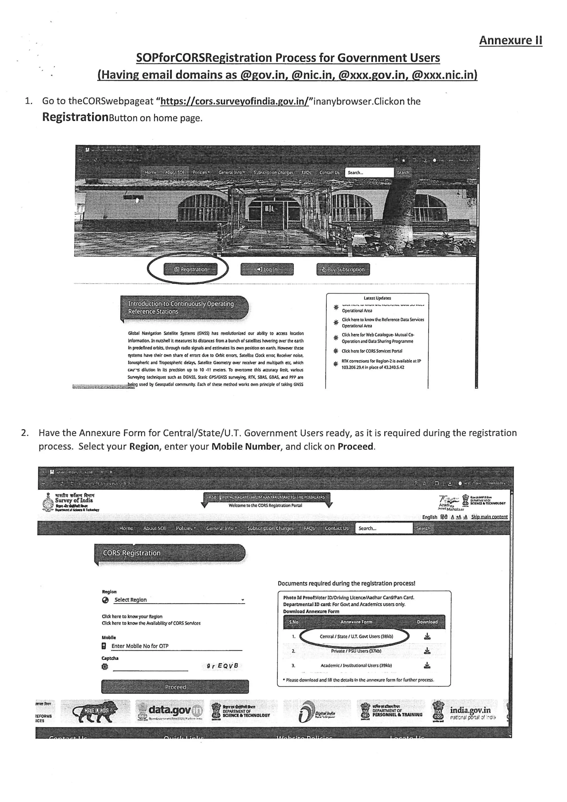 - Visit the Official Survey of India CORS Portal – The portal provides access to registration and CORS data services.