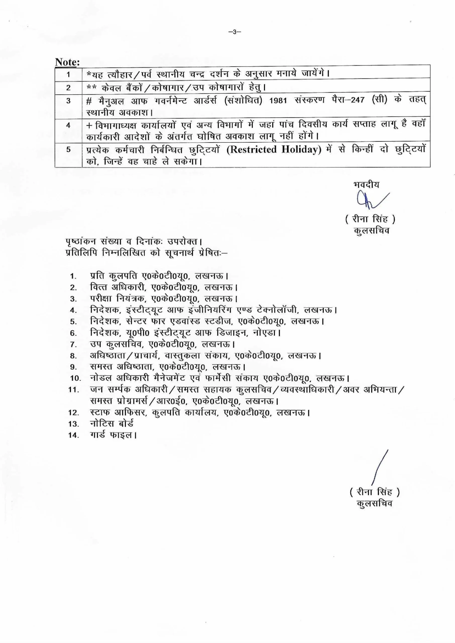 The AKTU Holiday List 2026 is a yearly schedule of holidays followed by AKTU and its affiliated institutions. It includes: