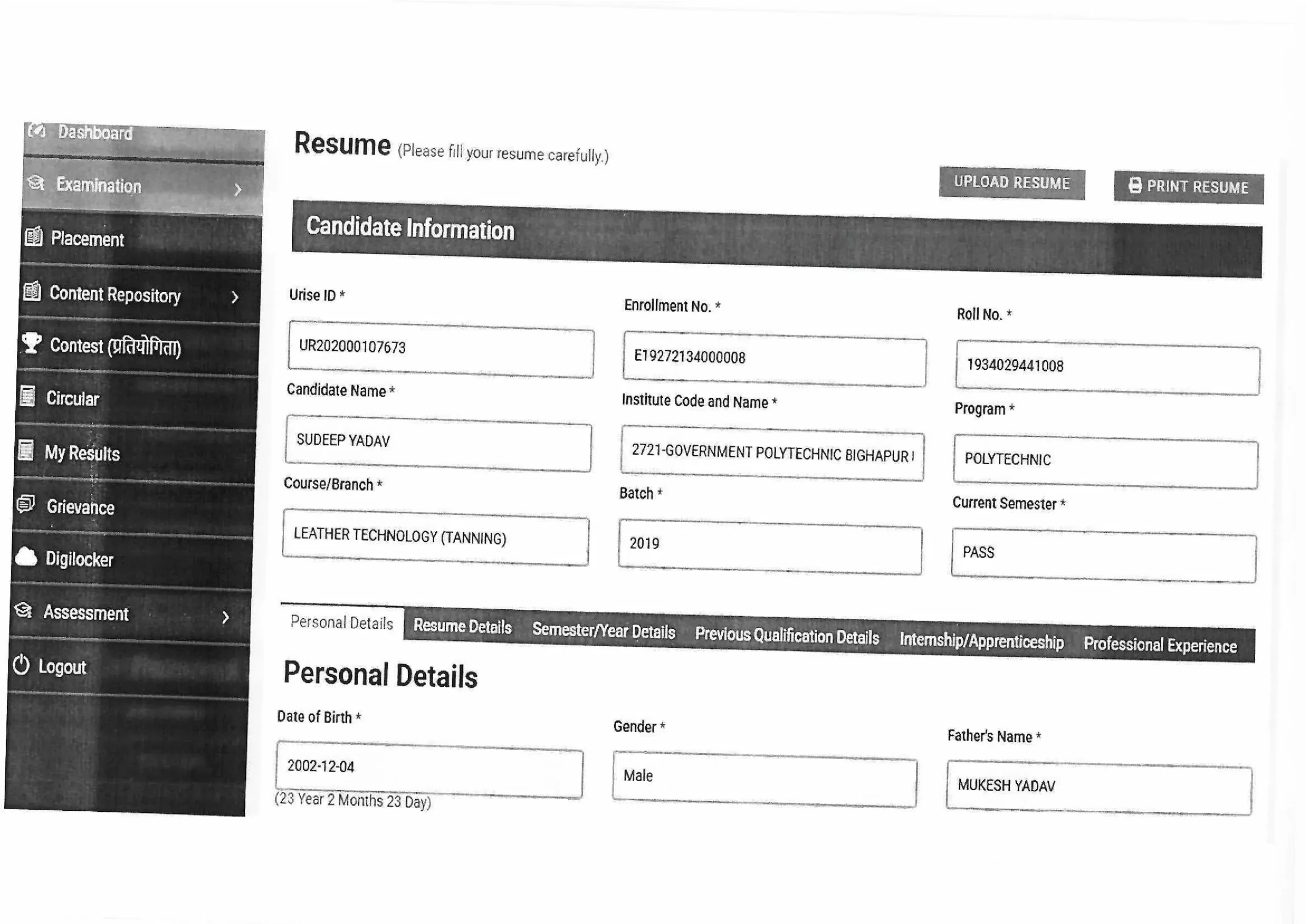 Students need their Enrollment number, date of birth, and personal details.