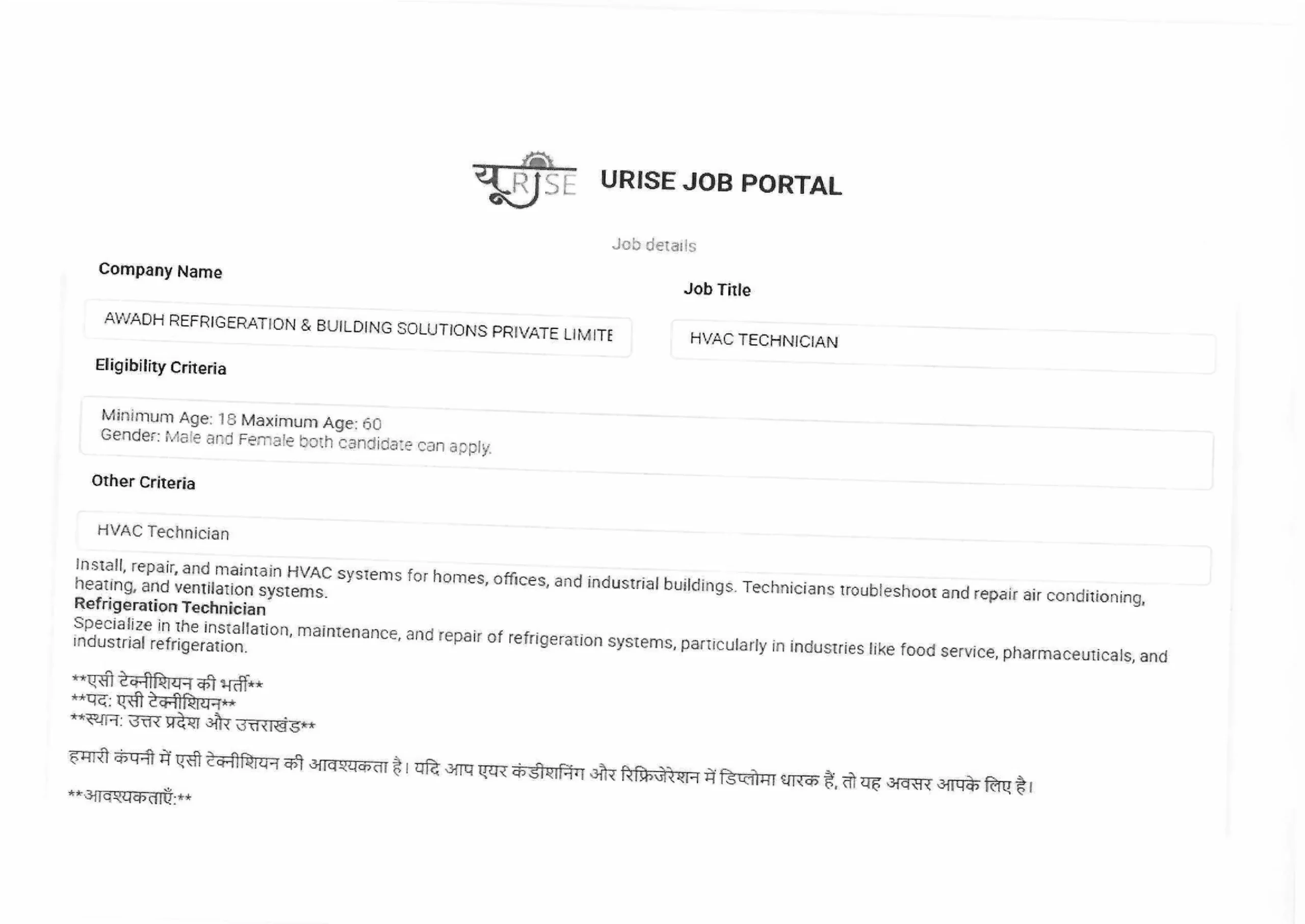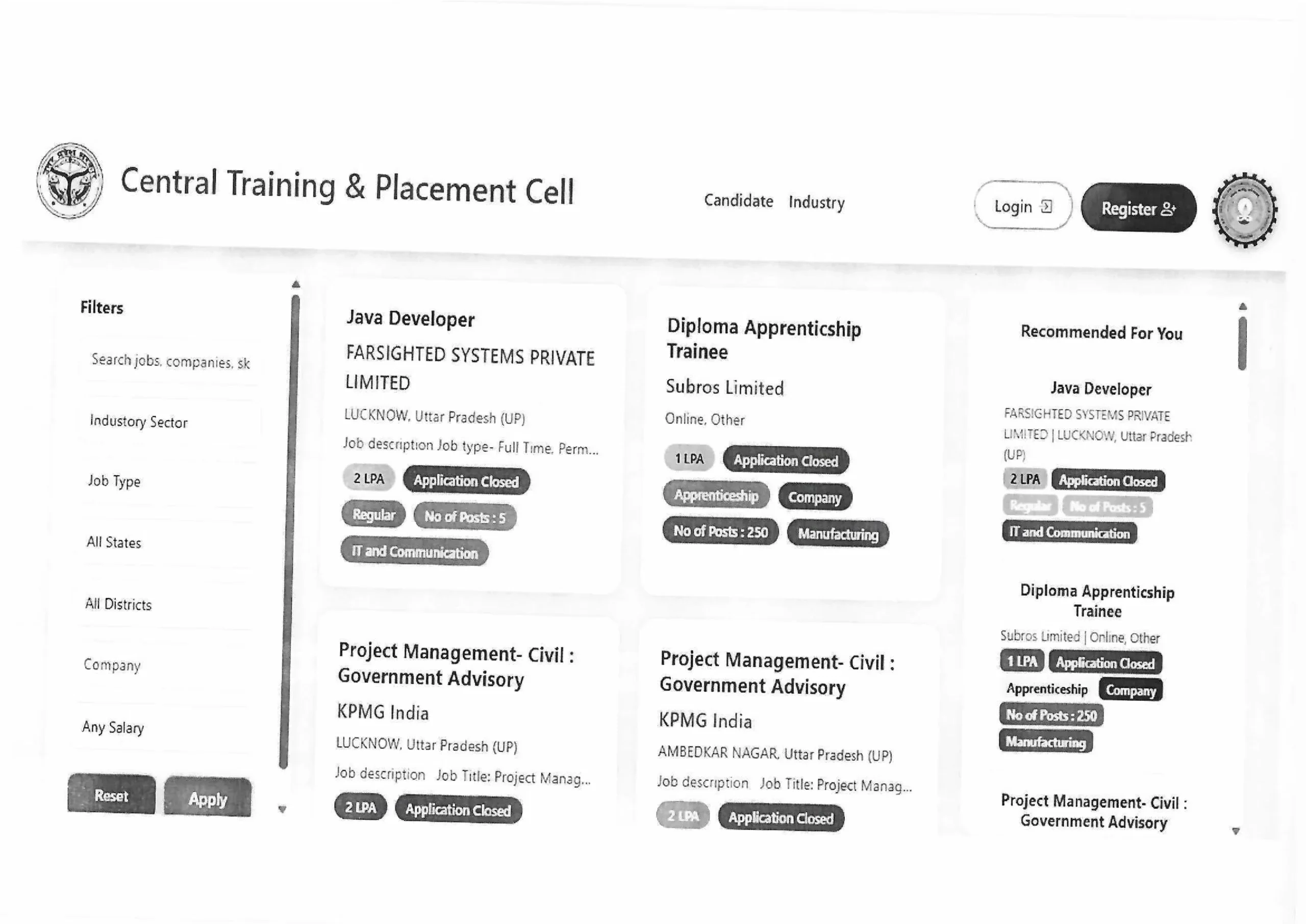 Some of the job roles listed on the URISE placement portal include: