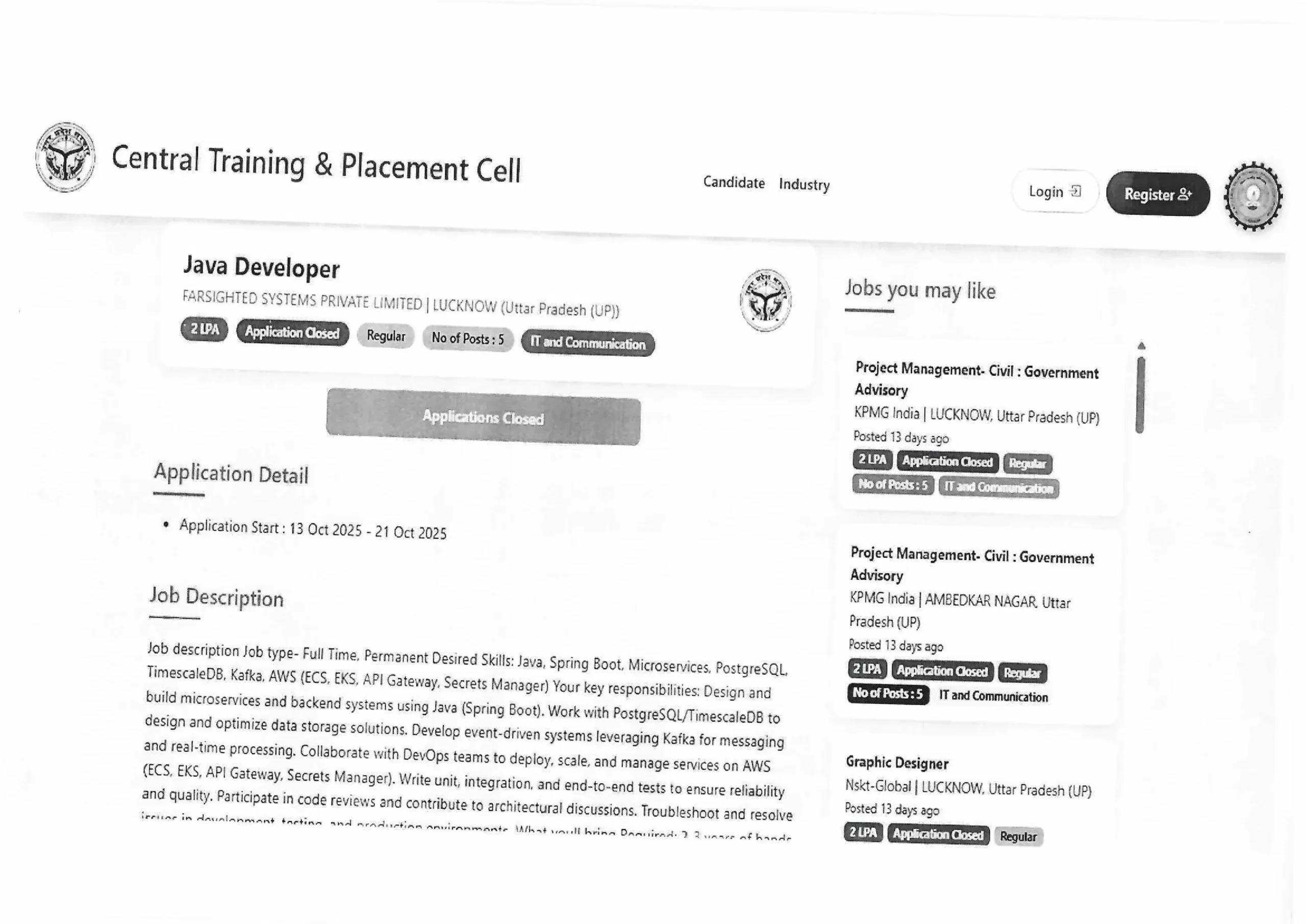 All students are advised to visit the portal, complete their profile, and regularly check for job notifications and placement drives.