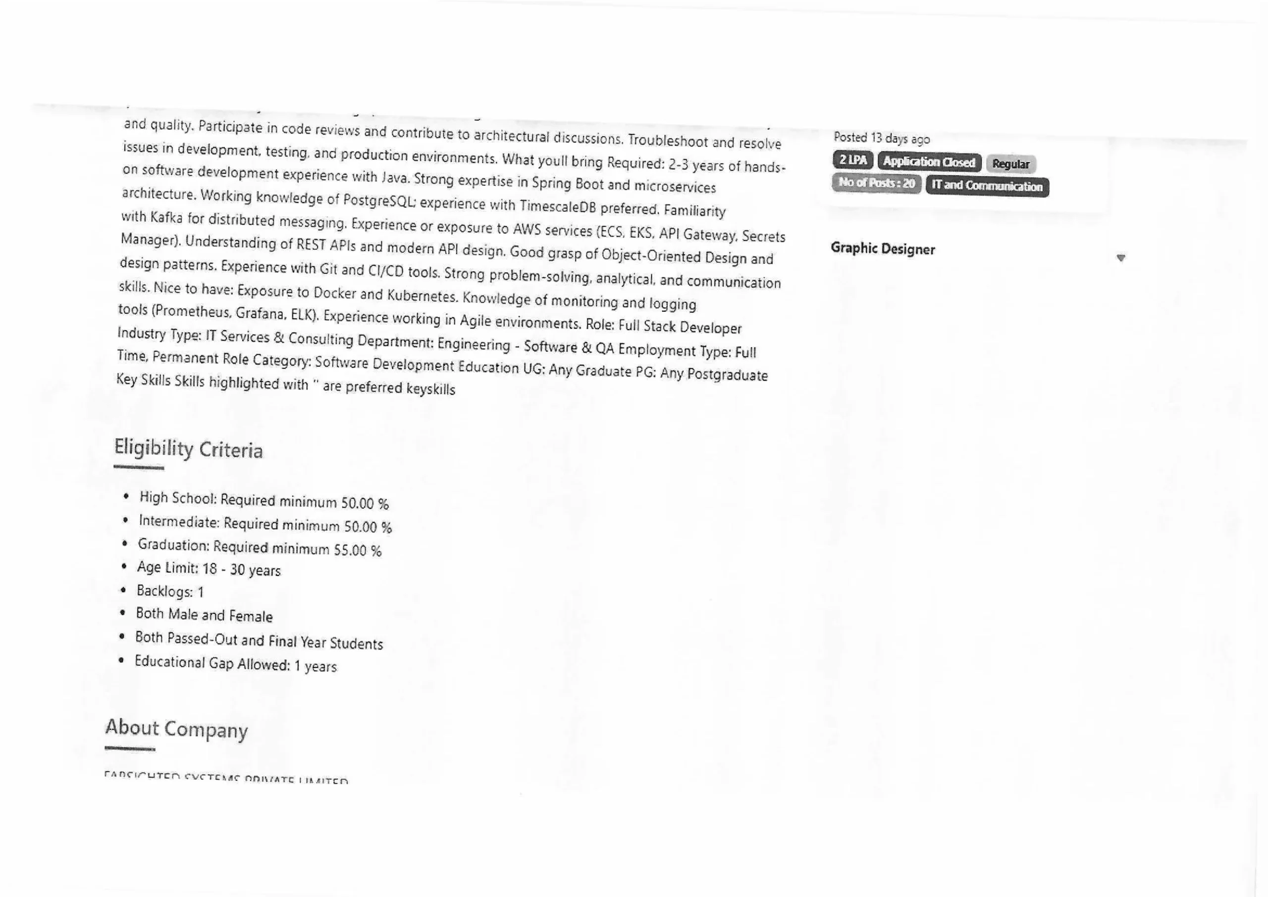 Eligibility criteria vary depending on the job role, but generally include: