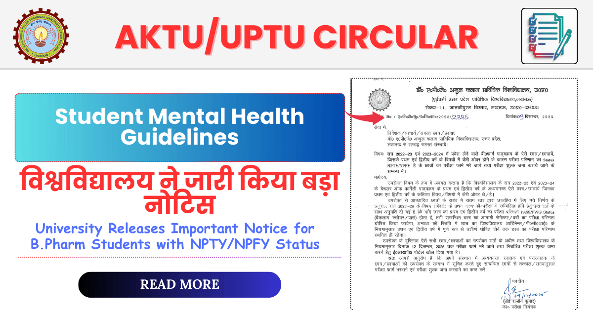 Each branch has been instructed to ensure the AKTU student mental health guidelines are implemented without delay.