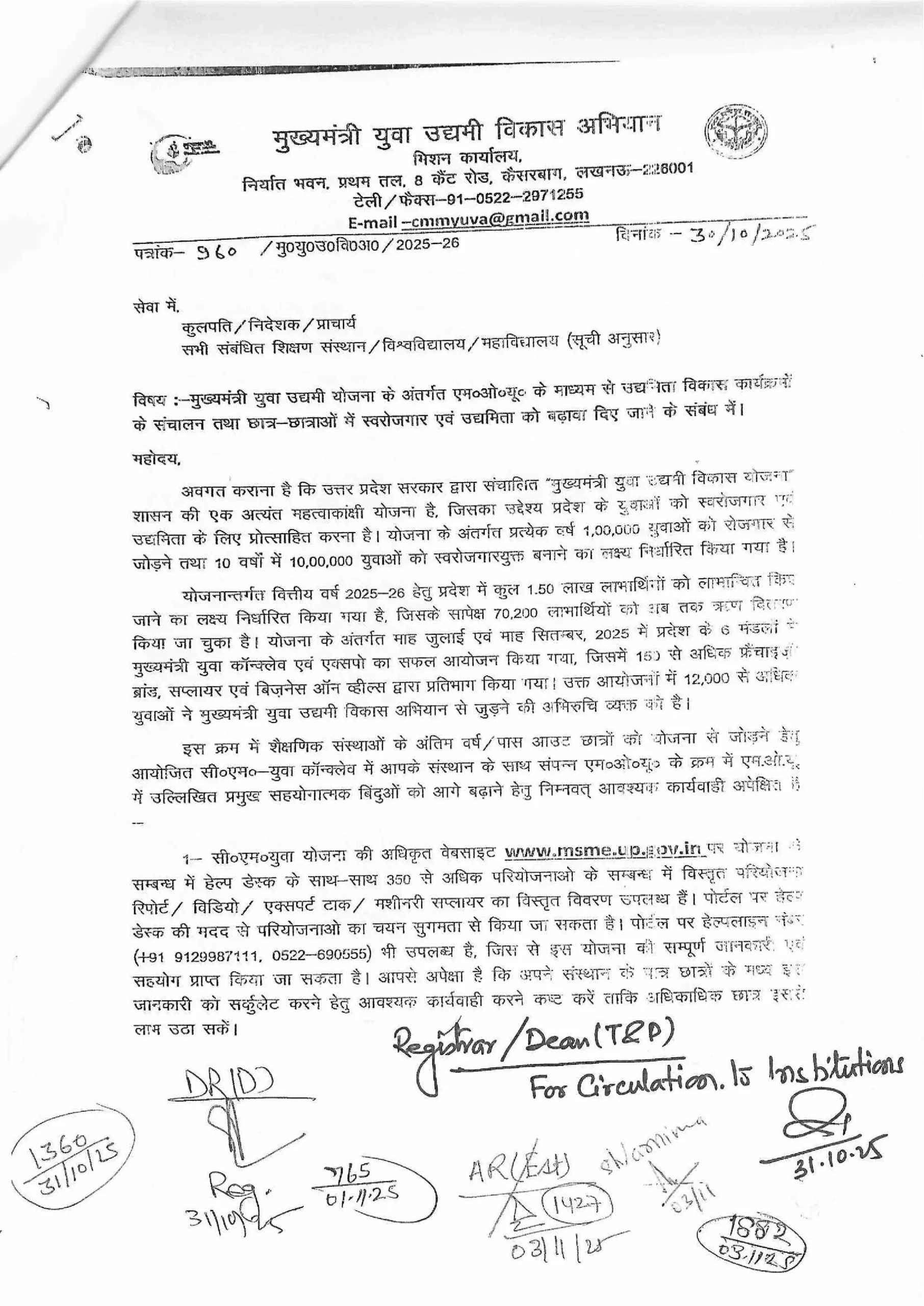 यह निर्देश मुख्यमंत्री युवा उद्यमी विकास अभियान मिशन कार्यालय के एक पत्र (दिनांक: 30.10.2025) के आधार पर जारी किया गया है। यानी यह एक विश्वविद्यालय स्तर का निर्णय न होकर, राज्य सरकार के मिशन का हिस्सा है। इससे पता चलता है कि सरकार इस योजना को लेकर कितनी गंभीर है।