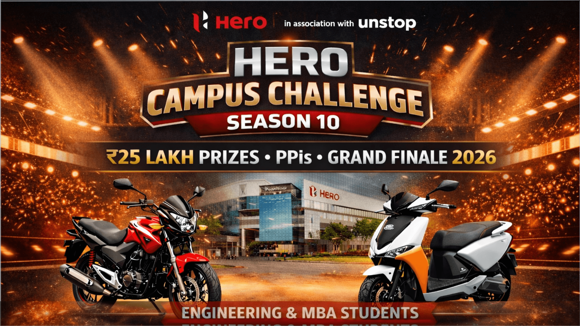 Hero Campus Challenge Season 10 is one of India’s biggest and most trusted campus competitions, offering students a rare mix of cash prizes, pre-placement interviews (PPIs), industry mentorship, and national-level recognition. Organized by Hero MotoCorp Limited in collaboration with Unstop, this competition is a golden opportunity for engineering and MBA/PGDM students in 2026.