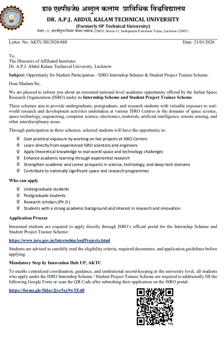 Eligible students are encouraged to carefully follow the official instructions, submit applications well in advance, and prepare themselves for a competitive selection process. Participation in ISRO’s academic programs is not only a learning experience but also a milestone in a student’s professional journey.