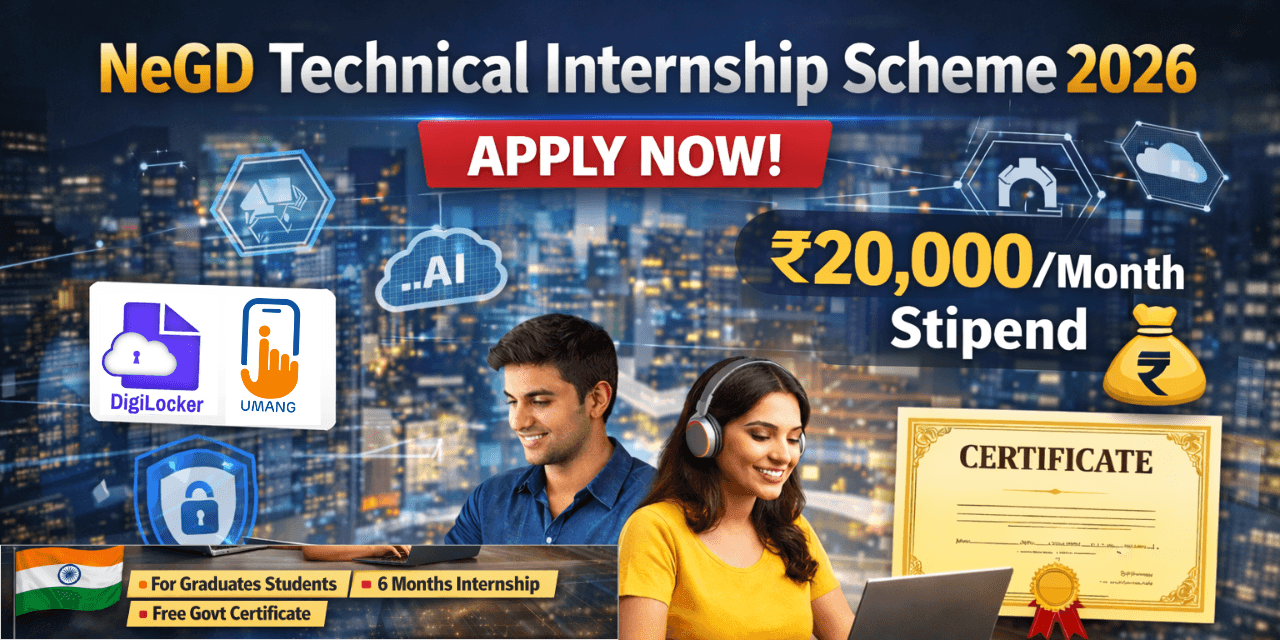 With a monthly stipend of ₹20,000, FREE certificate, and exposure to live platforms like DigiLocker and UMANG, the NeGD Technical Internship Scheme 2026 is one of the best government internships available for tech-focused students in India right now.